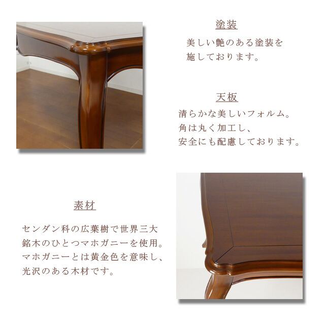 艶のある塗装を施した落ち着きと品格が漂うダイニングテーブルです。お部屋に雰囲気与えてくれます。