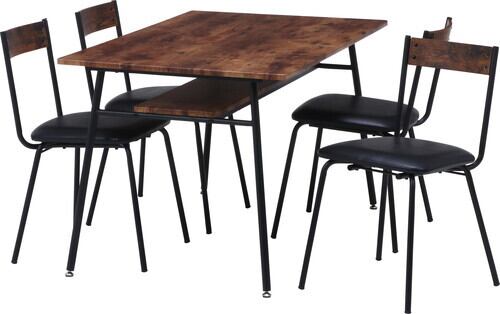 木目調とスチールの組み合わせがオシャレなダイニングテーブル。