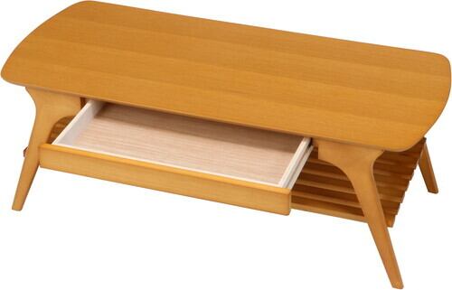 小物類をしまえる引き出し収納と、天板下には雑誌などを置ける棚が付いております。