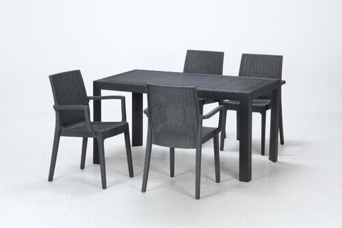 ラタンの風合いをプラスチックで再現したガーデンテーブルです。