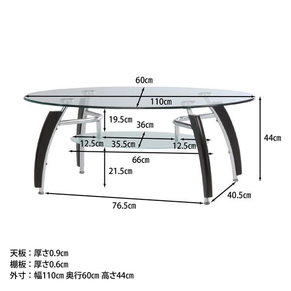 収納に便利な棚板付き。天板強化ガラス使用。