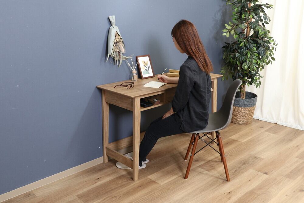 幅120×奥行51cmの天板は、パソコンとノートを広げてもゆったり使えるサイズです。
