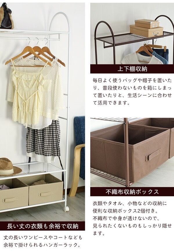 ハンガーラック・棚・収納ボックスを1つにまとめたハンガーラック。