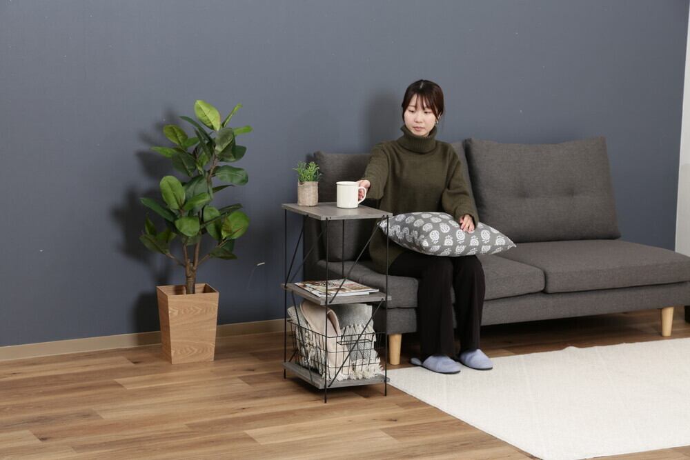 ソファ横などに置けばサイドテーブルとしてもお使いいただけます。