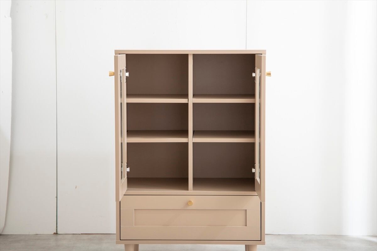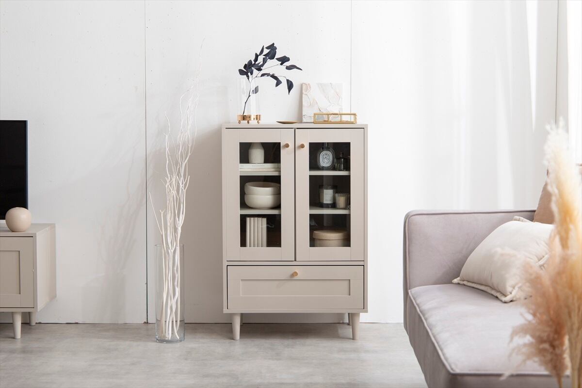 海外インテリア風の框デザインをあしらった『Calan(カラン)』ガラスキャビネット