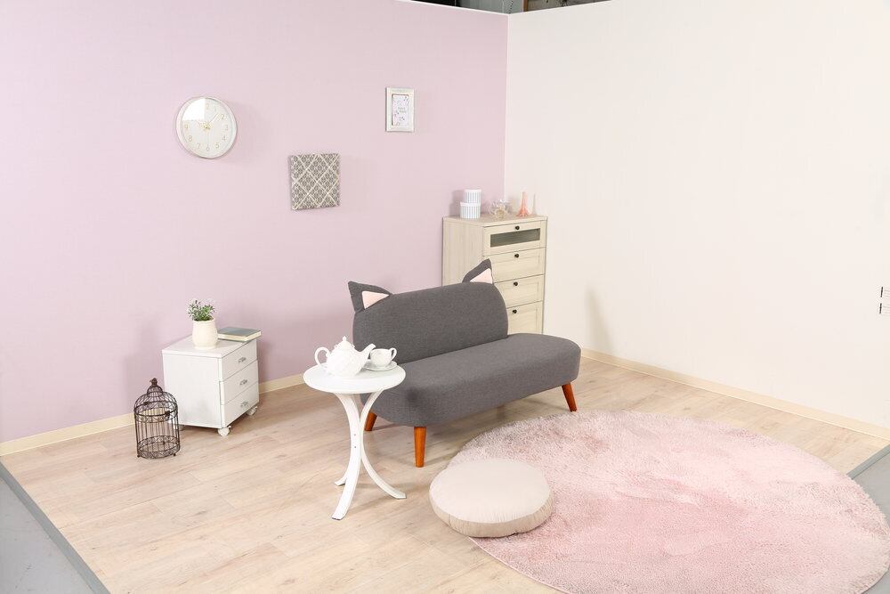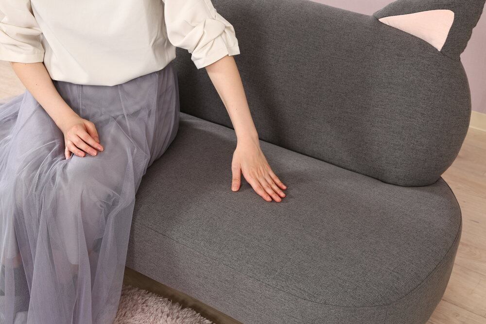 ソファに耳が生えちゃった。〈br〉ネコ好きにはたまらない、お部屋の主役級インテリア。座面124×45cmと2人でもゆったり座れるサイズ感。〈br〉アームレスタイプなので、広く使えるのもポイントです。底面にはロータイプ用の補助脚付きなので、高い脚を取り外してローソファとしても使えます。Sバネとウェービングベルトでヘタリにくい座面は、沈み込みすぎないほどよい硬さで、快適な座り心地です。座面の下は高さが18.5cmあるので掃除もラクラク。〈br〉収納スペースとしても使えます。見ているだけで癒される愛くるしいフォルム。