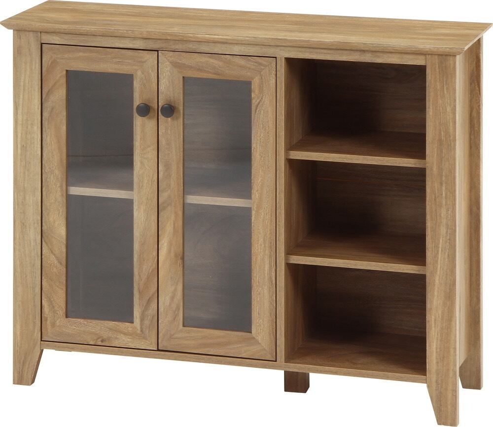 左の収納スペースは幅46×奥行25.5cmで上下2段に分かれており、食器類やリビング雑貨などをすっきり収納できます。