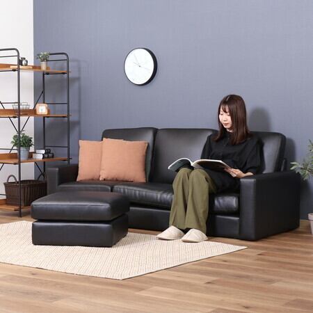 ○構造部材:天然木 ○張り材:合成皮革(PVC) ○クッション材:鋼製バネ/ウェービングベルト/ウレタンフォーム/鋼