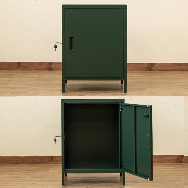 盗難防止ワイヤーと鍵付き扉で収納物をしっかり守ります