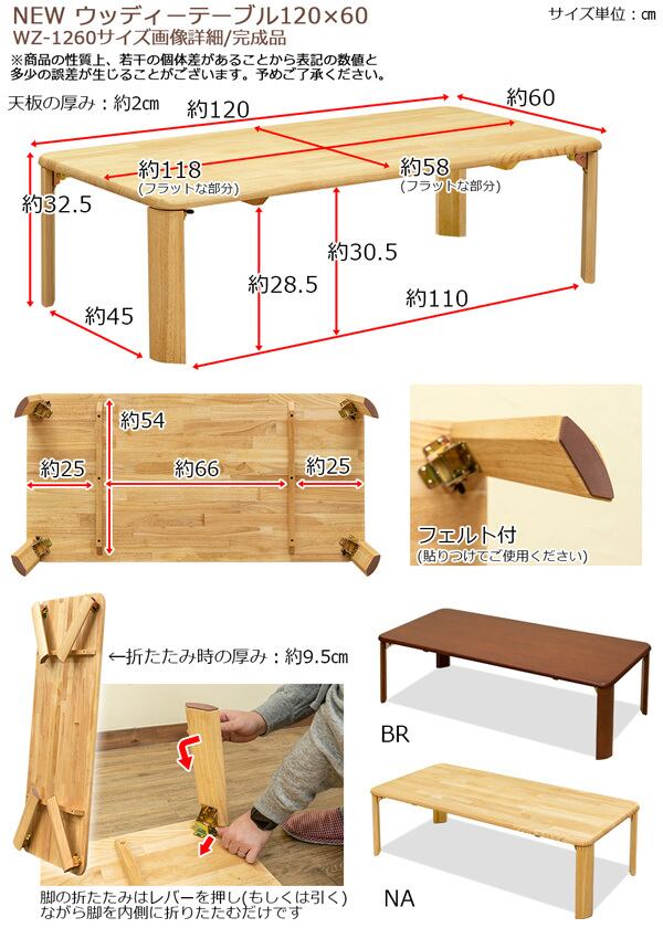 【アウトレット】NEWウッディーテーブル 120×60 BR/NA
