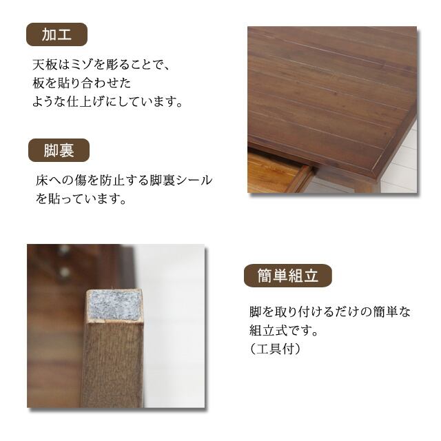 天板はミゾを彫ることで板を貼り合わせたような仕上げにしています。