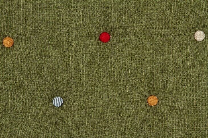 カラーや柄の違うファブリックのボタンがランダムに背もたれについております。
