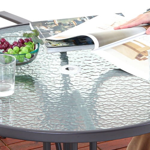 テーブルは耐久性のある波系ガラスを使用し、涼しげな印象です。