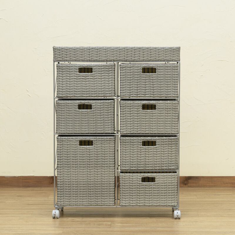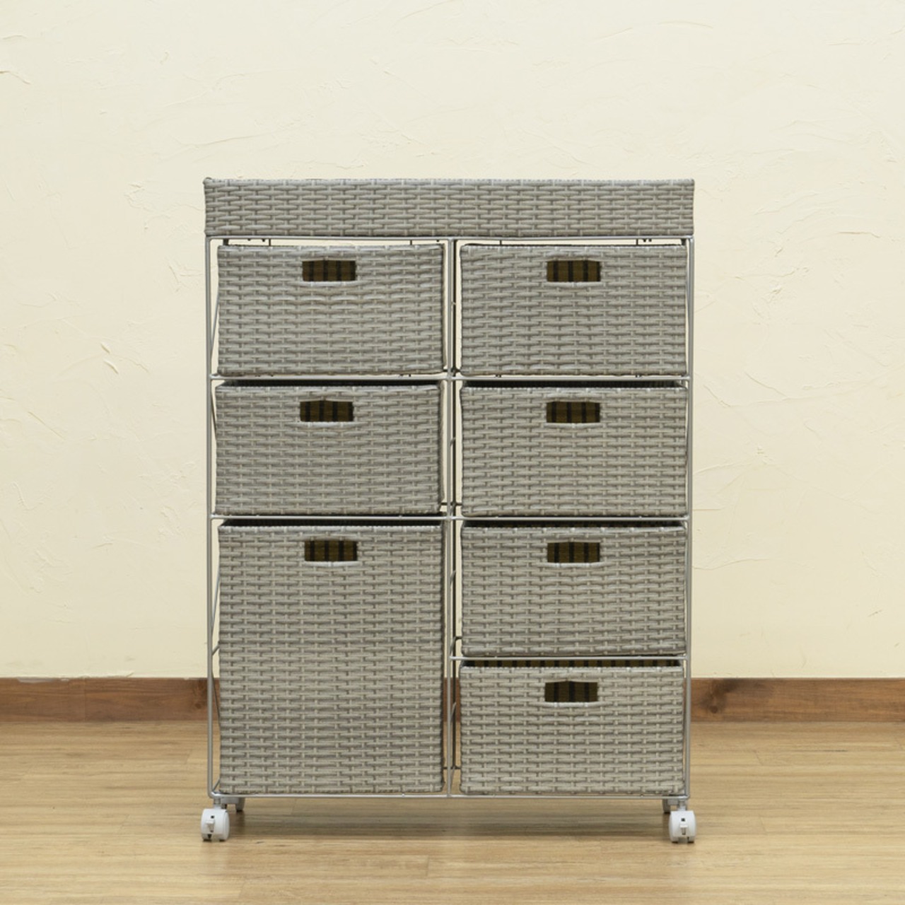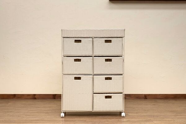 ラタン調 チェスト 4段ワイド BR/IV/CM/GY