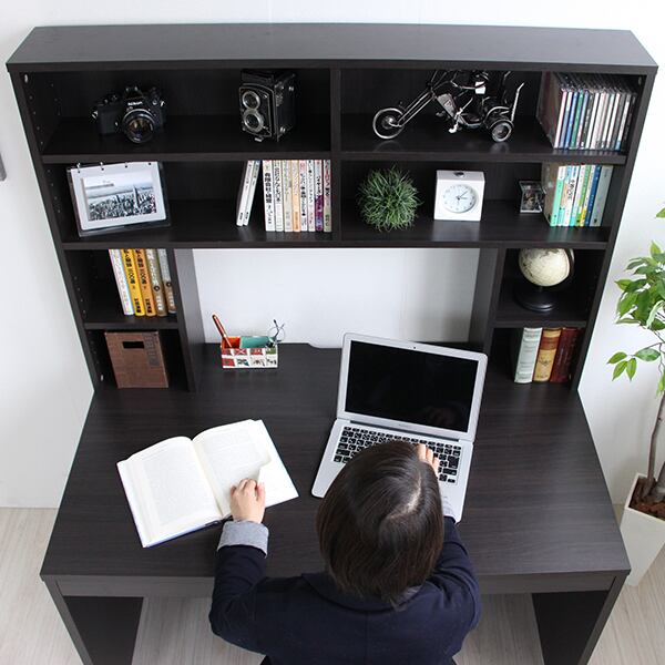 パソコンデスク 上下書棚付き 115cm幅 ダークブラウン 上下一体型