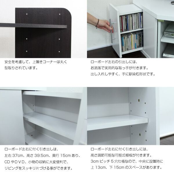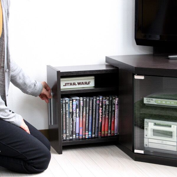 ■ローボードスペースには複数のAV機器も収納可能、中身が確認できるクリアガラス